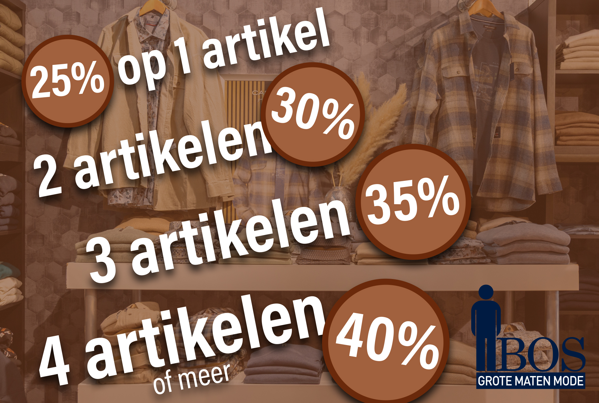 Stapelkorting op een groot deel van onze najaarscollectie! Geldig op winterjassen, colberts, overhemden, truien, gekleurde broeken*.